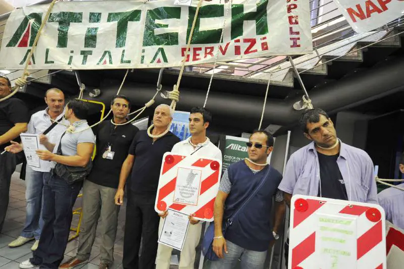 La protesta Alcune decine di lavoratori della Atitech bloccano dalle 11 di oggi i check-in di Alitalia e AirOne all’aeroporto napoletano di Capodichino, provocando ritardi nelle partenze di quattro voli. Lo riferiscono la società che gestisce l’aeroporto e il sindacato Sdl. La protesta è scattata per il mancato pagamento degli stipendi di luglio, dice una nota del sindacato. "Mille famiglie senza stipendio, oltre i lavoratori in Cigs, anche quelli che hanno svolto attività lavorativa non hanno percepito nulla". I manifestanti hanno bloccato 12 check-in delle due compagnie, provocando il ritardo di tre voli interni (verso Fiumicino, Milano Malpensa e Milano linate) e uno internazionale (il Napoli-Parigi in code sharing con Air France), dice la Gesac, società che gestice lo scalo.