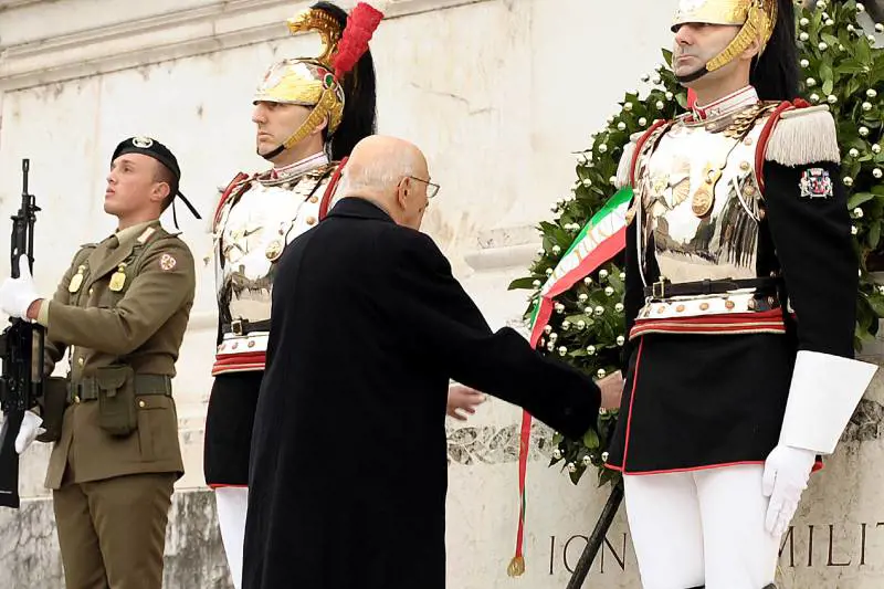 Libertà e democrazia "Rendiamo omaggio a coloro che sono caduti per assicurare al nostro Paese libertà, democrazia e prosperità. Nel contesto pur profondamente mutato del XXI secolo, questi restano valori fondamentali che dobbiamo continuare a tutelare ed a consolidare. Ieri, ho celebrato il 4 novembre insieme ai nostri militari impegnati nella missione Unifil in Libano ed ho potuto ancora una volta apprezzare lo straordinario contributo che le Forze Armate sanno dare - per generale riconoscimento - alla sicurezza internazionale, alla pacifica convivenza e al progresso dei popoli. La critica fase di instabilità che stiamo vivendo, con le sofferenze e le ingiustizie che pure comporta, segna un passaggio di rilevanza fondamentale nella transizione verso una società globale sempre più interconnessa ed interdipendente. Questa nostra società sarà in grado di affrontare e vincere le grandi sfide dell'umanità se gli Stati sapranno trovare la necessaria unitarietà di intenti e costruire insieme un sempre più rappresentativo sistema di istituzioni internazionali ed un'efficace struttura di sicurezza".