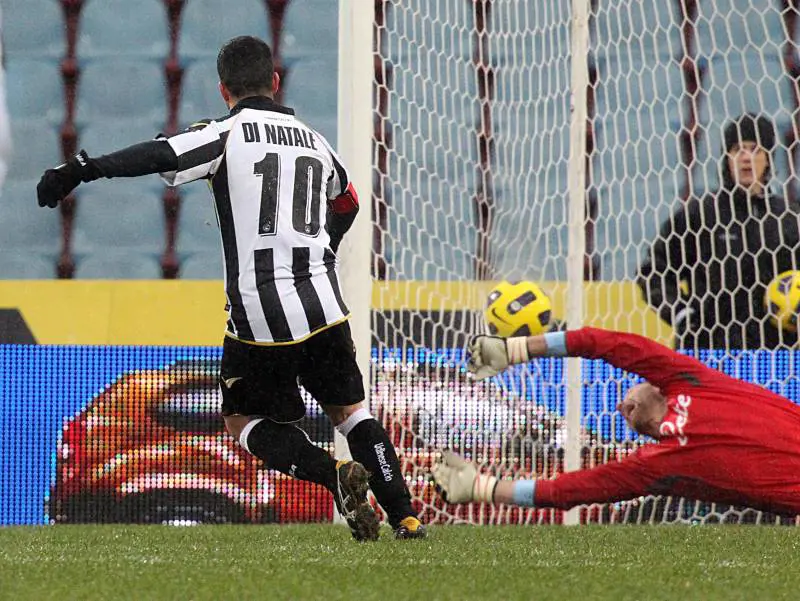 La tripletta di Di Natale Di Natale bussa due volte nel primo tempo. Al 16’ sblocca il risultato trasformando un rigore assegnato per l’intervento di De Sanctis su Sanchez. Il bis arriva al 45’ con una prodezza balistica: il capitano spara da 25 metri, palla all’incrocio dei pali e De Sanctis si arrende di nuovo. Il Napoli è un fantasma e incassa anche il terzo ceffone dopo l’intervallo. Di Natale, tanto per cambiare, calcia un corner. Hamsik è osceno nella copertura del primo palo: 3-0 al 57’. Lo slovacco ha il merito di riscattarsi immediatamente dall’altra parte. Botta secca, Handanovic resta a guardare e 3-1 al 58’.