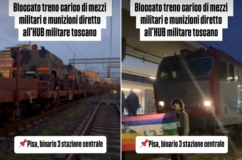 Nuovo blocco ferroviario in Italia e, per la precisione, a Pisa, dove gli antagonisti sono scesi sui binari per fermare il transito di un treno merci che, stando alle loro informazioni, sarebbe dovuto essere carico di “mezzi militari ed esplosivi”. Il blocco è durato circa quattro ore, durante le quali i manifestanti si sono seduti e sdraiati sui binari per impedire il passaggio del treno che, alla fine, è stato costretto a tornare indietro. L’area è sempre la stessa, quella antagonista dei centri sociali, quella rossa dei comunisti e quella dei collettivi studenteschi di sinistra, che hanno ovviamente rivendicato l’azione. Ma il risultato ottenuto non è stato il blocco del treno che, comunque, arriverà lo stesso a destinazione con il suo carico di mezzi (non di armamenti) ma il blocco totale della circolazione ferroviaria, che non ha creato un disservizio alla filiera militare ma a alla comunità locale, fatta di famiglie e pendolari, che per il capriccio di un manipolo di soggetti hanno subito un danno.