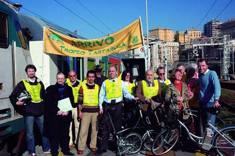 Dal Matitone fino al primo binario della stazione Brignole, in mezzo al traffico di un venerdì qualsiasi a Genova, un pedone impiega soltanto cinque minuti in più di un automobilista. Lo conferma il risultato del «Trofeo Tartaruga», la gara che si è svolta ieri mattina tra mezzi di trasporto urbano organizzata dal Treno Verde di Legambiente e Ferrovie dello Stato. Lobiettivo della manifestazione è quello di promuovere tra i cittadini luso di mezzi di trasporto poco inquinanti o del tutto ecologici dimostrando che non solo si arriva prima, ma che si risparmia anche denaro. La dimostrazione? Il primo arrivato è stato Marco Elena, volontario di Legambiente, che ha tagliato il traguardo in 12 minuti a bordo di una bici elettrica al solo costo (molto contenuto) della ricarica.