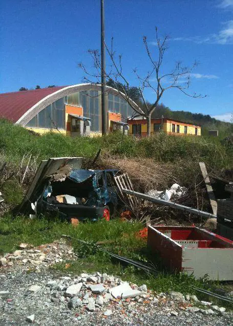 I primi sospetti vengono quando, buttando locchio vicino a un manufatto di mattoni grezzi, si scorgono i pezzi di quello che doveva essere un «quadro svedese», unattrezzatura da palestra molto usato nelle scuole soprattutto nei decenni passati. Il primo indizio viene subito bissato dal secondo e dal terzo, decisamente inequivocabili. Su uno spiazzo di detriti ci sono uno scivolo da bambini e le rampe smontate di una scala in ferro, con tanto di ringhiere contorte. «Esattamente il materiale che è stato dismesso negli anni scorsi dalla scuola media Mario Sironi, dalle elementari Ermanno Gindoli e dal parco giochi di Riccò del Golfo - spiega deciso il capogruppo dellopposizione Loris Figoli, candidato che sfidò lattuale sindaco Carlo Mazza alle amministrative del 2009 - I lavori vennero ultimati proprio alla vigilia del voto. Ora ritrovo questo materiale in quella che pare una vera e propria discarica abusiva nellarea del Palazzetto fantasma». Oltretutto, controllando bene scivolo e ringhiera, non sembravano neppure così malandati da essere buttati via. «Ora certamente sono irrecuperabili visto il modo in cui sono stati buttati via - incalza Figoli - Ma la scala della scuola, che ricordo era quella esterna di emergenza, era perfettamente a norma ed è stata tolta per costruirne una in cemento armato e marmo. Mentre laccesso dellistituto è sempre quello dei tempi del Duce, con la scala e la vecchia piattaforma per far salire i disabili al posto dellascensore. Quanto allo scivolo, anziché buttarlo via avrebbero potuto riadattarlo in una delle tante frazioni che non hanno giochi».