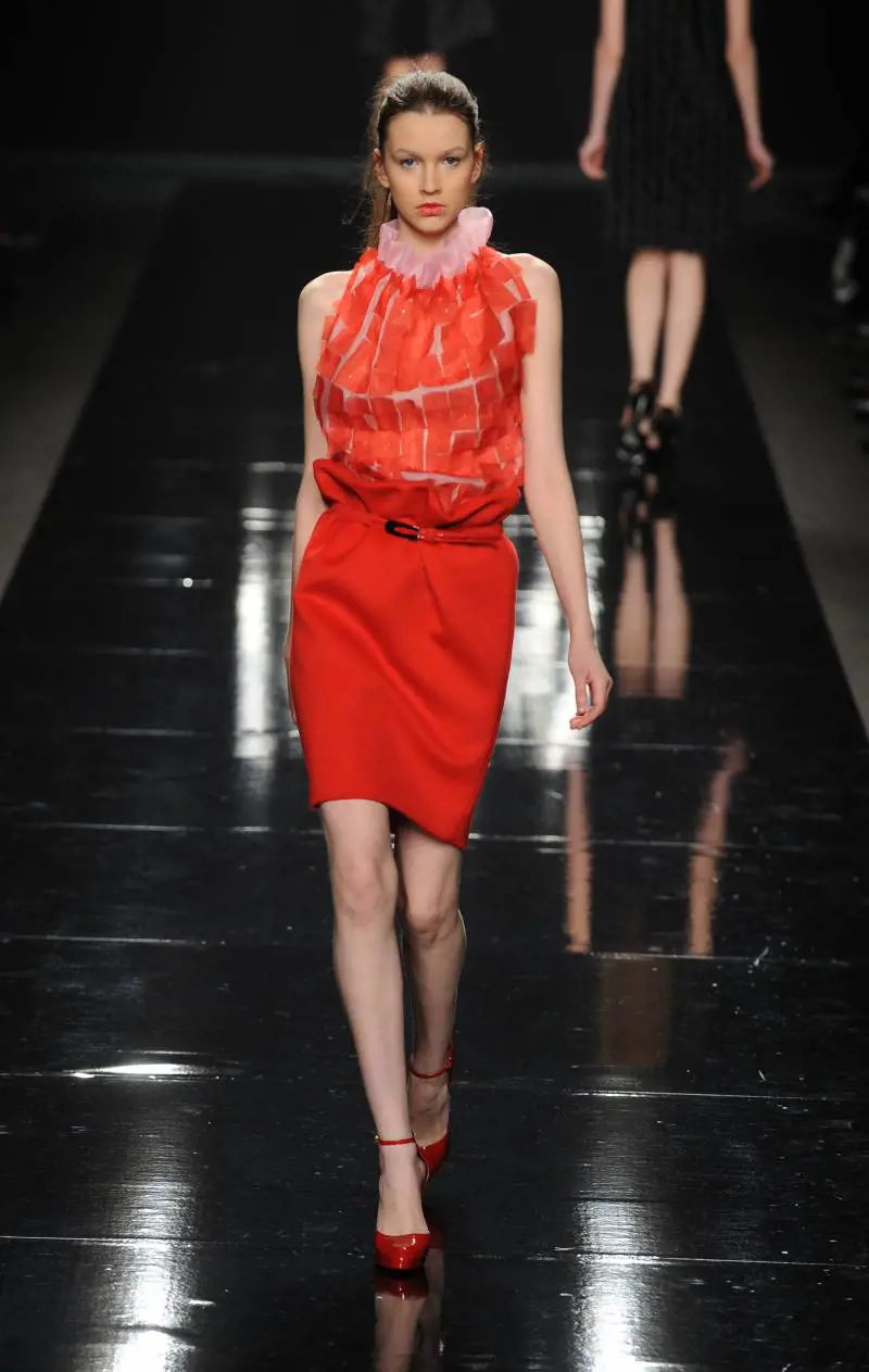 In realtà la donna di riferimento delle varie collezione potrebbe essere Eleanor Roosevelt, seconda moglie e lontana cugina del trentaduesimo presidente degli Stati Uniti, l'uomo che con la politica del cosiddetto New Deal traghettò l'America fuori dal baratro economico del '29. La presenza in passerella da Clip di Belen Rodriguez, discussa protagonista delle cronache rosa, stride con l'indiscutibile eleganza dei capi: dal tailleur cammello con giacca sette ottavi ai magnifici abiti da mezza sera con piccoli parallelepipedi di paillettes.