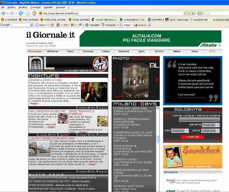 La sezione speciale propone una rubrica di informazione sulla scena culturale e sulle diverse offerte di intrattenimento e di svago: dai ristoranti, ai teatri, ai concerti, alle discoteche e ai locali notturni. Grazie a tutte le informazioni contenute Nightlife è una vera e propria agenda personale online.