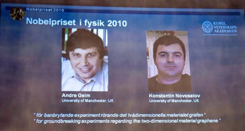 Stoccolma - Il Nobel per la Fisica 2010 è stato assegnato a Andre Geim e a Konstantin Novoselov per le ricerche sulla struttura del grafene, un materiale avente uno spessore equivalente alle dimensioni di un solo atomo. I due scienziati hanno dimostrato che il carbonio in una forma estremamente sottile - dello spessore di un atomo - ha eccezionali proprietà nella fisica quantistica. Geim è cittadino olandese mentre Novoselov ha la doppia cittadinanza, britannica e russa.