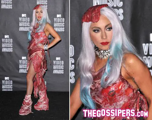In effetti Lady Gaga appare come un’opera vivente, ultimo esempio di Body Art mediatica, deprivata dell’aspetto etico - la performance è stata per decenni la forma d’arte dove l’autore coincidendo con l’oggetto rappresentato si assume il carico di rapprsentazioni “forti”, spesso sofferenti - e limitata alla mera sfera dell’estetica, anzi dell’estetismo. Prendiamo ad esempio la recente cover di Vogue dove la soubrette è vestita appena di un bikini di bistecche di carne cruda. Si è gridato allo scandalo, al cattivo gusto, eppure quest’immagine, immortalata dallo scatto di Terry Richardson, il fotografo di moda più oltraggioso ed esplicito della scena americana, cita pressoché letteralmente un’opera dell’artista canadese Jana Sterbak, che nel 1987 indossò un abito di carne allo scopo di sottolineare i perversi rapporti tra potere e mercificazione del corpo. Intervento peraltro ripreso altre volte, dal macedone Robert Gligorov in un lavoro ottenuto con photoshop all’inizio degli anni ’90, e dalla cubana Tania Bruguera con una performance particolarmente drammatica e lacerante.