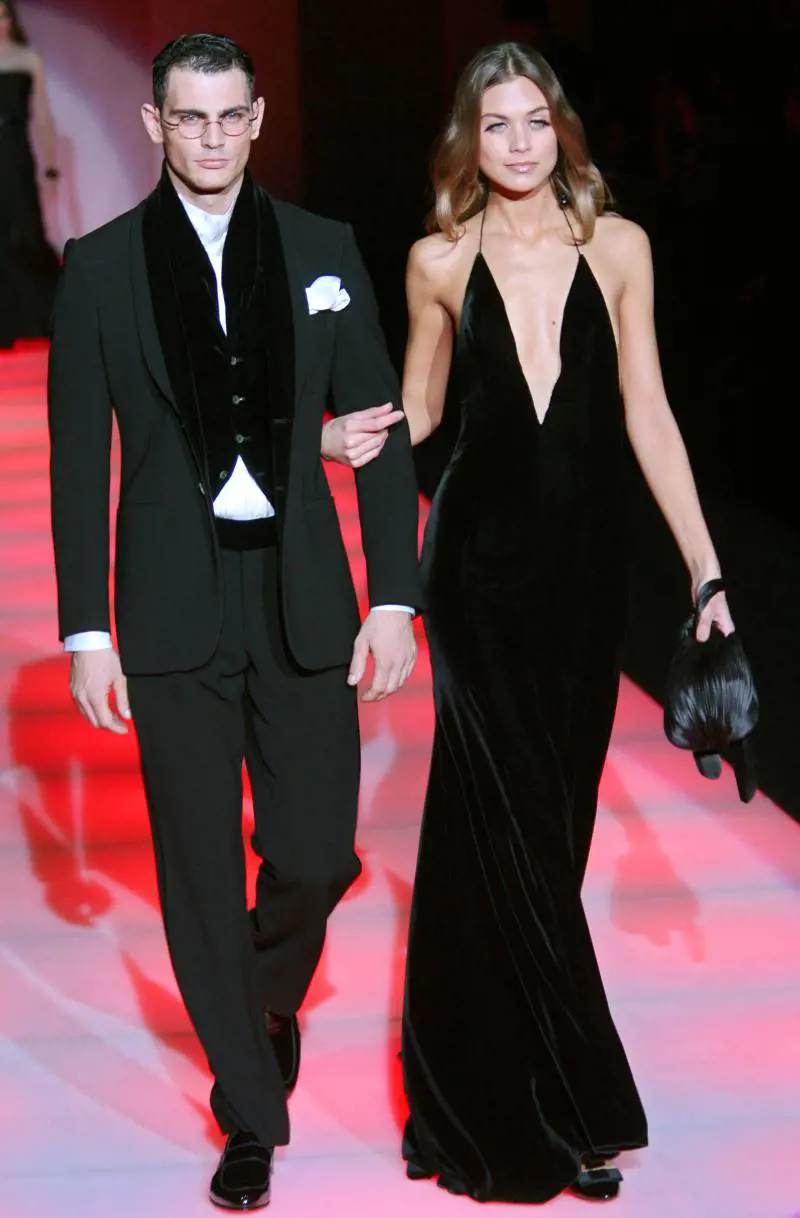 Le camicie dal collo montante suggeriscono addirittura un pizzico d’alterigia anche se Armani le trasforma in morbidissimi indumenti: come un pullover dolcevita ma dall’aspetto molto più racè. Questi colli danno slancio al portamento esaltato soprattutto dagli impeccabili tre pezzi: pantaloni, giacca e sotto il gilet. Perfino lo sportswear ha un aspetto educato senza comunque scivolare nello stucchevole che per Armani è un peccato mortale. Velluto per il giorno come per la sera, l’irrinunciabile cashmere, tantissimo blu royal e sofisticate alternanze di grigio sul cammello: tutto ruota attorno al rispetto di sé e degli altri. «Questa è una moda per farsi dare del lei: basta con la sciatteria, proibito esporre i muscoli in maniera sfrontata, bisogna rieducarsi alla raffinatezza perché un uomo non può essere regale se si concede un eccessivo giovanilismo» sostiene Armani indicando in Luca di Montezemolo un buon esempio da seguire «perché quello di oggi è un re di denari».