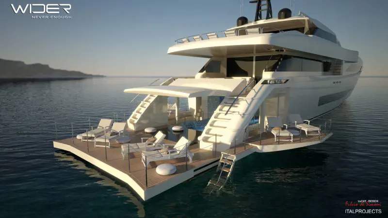 Come, ad esempio, una volta varato il tender, il buco che il tender ha lasciato si trasforma in una piscina». A proposito di tender: sorpresa nella sorpresa, sarà un Wider 33’ già nel pc di De Simoni. L’investimento iniziale in questo ambizioso progetto si aggira attorno ai 10 milioni di euro.Nuova scommessa Wider, un maxiyacht di 45 metri