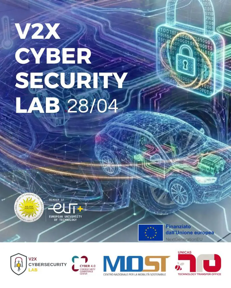 L'evento inaugurale si terrà il 28 aprile 2026 presso l’Aula Magna dell’Area di Ingegneria, in Via G. Di Biasio 43 – Cassino, a partire dalle ore 09:30 Saluti istituzionali ▪ Marco Dell'Isola, Magnifico Rettore ▪ Paolo Spagnoletti, Presidente Cyber 4.0 – Cybersecurity competence center ▪ Raffaele Trequattrini, Commissario Consorzio Industriale del Lazio ▪ Luigi Ferrigno, Prorettore alla Terza Missione Unicas ▪ Carlo Russo, Prorettore alla Ricerca Unicas ▪ Marco Donald Migliore, Direttore vicario Dipartimento di Ingegneria Elettrica e dell'Informazione ▪ Domenico Falcone, Direttore Dipartimento di Ingegneria Civile e Meccanica Dalle ore 10.30 - Focus Tecnico: V2X-Cybersecurity Lab - finalità del laboratorio e sinergie con l’ecosistema nazionale ▪ Filippo Silvestri, Chief Business Development Officer, Cyber 4.0 – Cybersecurity competence center ▪ Alessio Gerbaldi, Head of Research and Innovation, Cyber 4.0 – Cybersecurity competence center ▪ Domenico Capriglione, Responsabile scientifico V2X-Cybersecurity Lab e EMC2 Lab Dalle ore 11 – Il Laboratorio visto dalle imprese – Opportunità di collaborazione e strumenti a supporto delle aziende: competitività e mercato globale.