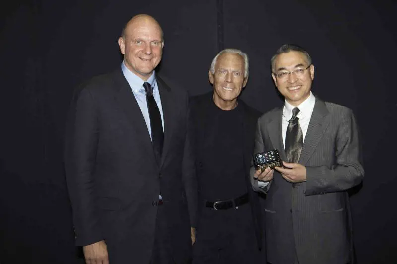 Tra i primi Windows phone, lo smartphone Giorgio Armani-Samsung rende più facile gestire la vita professionale e personale da un dispositivo unico come la persona che lo utilizza. Questo smartphone è uno dei primi teleoni a utilizzare Windows Mobile 6.5 che include una nuova pagina iniziale e un dashboard che semplificano e visualizzano in modo intuitivo funzioni di produttività chiave quali e-mail, messaggi di testo, chiamate perse e appuntamenti. Il servizio gratuito My Phone consente inoltre agli utenti di accedere, gestire ed eseguire facilmente il backup delle informazioni personali contenute nel dispositivo utilizzando un servizio basato su web e protetto tramite password. La sincronizzazione e i backup automatici garantiscono all'utente che i contatti, gli appuntamenti, i messaggi di testo e altre informazioni siano sempre aggiornate e facili da recuperare se il cellulare viene perso o se si cambia il telefono. Inoltre lo schermo ha una apertura a due fasi con inclinazione di 30 gradi.