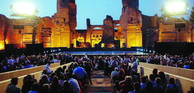 Nelle nove recite non manca lorchestra, il coro e il corpo di ballo del teatro impegnato in questo dramma lirico rappresentato alle Terme per la prima volta nel 1939.