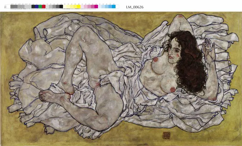 Determinante l’incontro nel 1907 con Klimt, ma la «linea» sinuosa e decorativa di questo artista, tipica dell’Art nouveau o dello Jugendstil, diventa in Schiele l’aspra ossatura di una costruzione spaziale libera, violenta, esasperata. Talmente cruda che si trasformerà presto in espressionistica, per trattare in forme appiattite e cariche di simboli, come in Gauguin, temi duri e forti, dalla sessualità alla morte, dalla malinconia al male di vivere.