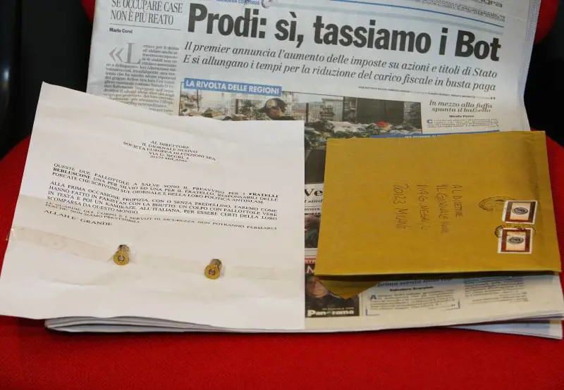 Milano - Due pallottole ai fratelli Berlusconi. Paolo, editore de il Giornale, e Silvio, leader di Forza Italia. Spedite in busta chiusa nella redazione milanese del nostro quotidiano. Accompagnate da una lettera di avvertimenti e minacce di morte. Una pagina scritta al pc, tutta in stampatello, due bossoli inseriti nella missiva, incollati al foglio con un nastro di scotch. Tutto il materiale è già in possesso degli investigatori della Digos che lo stanno esaminando.