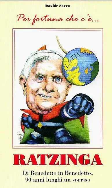 Si può ridere del Papa? Alla domanda, di questi tempi quantomai attuale, ha risposto un recente sondaggio spaccando lItalia più o meno a metà. Di certo il vignettista Davide Sacco che con lumorismo ha molto a che fare, deve pensare che dei pontefici, quelli di ieri e di oggi, si può, quantomeno, sorridere. E così ci invita a fare, riscoprendo quel lato teneramente umano di chi sembra tanto lontano da noi. Di qui il volume «Per fortuna che cè... Ratzinga», che porta sulla prima di copertina lunica immagine a colori di tutto il libro, dedicata non a caso a Papa Benedetto XVI. Il pontefice è rappresentato nelle vesti di un supereroe, che prende a pugni un mappamondo con la scritta relativismo. Il volto del Papa è disteso, le labbra socchiuse in un sorriso rassicurante. Un inizio che dà lidea del lavoro del giovane vignettista e del suo intento: restituire ai pontefici del Novecento e del Duemila un volto riconoscibile e vicino empaticamente a ciascuno di noi.