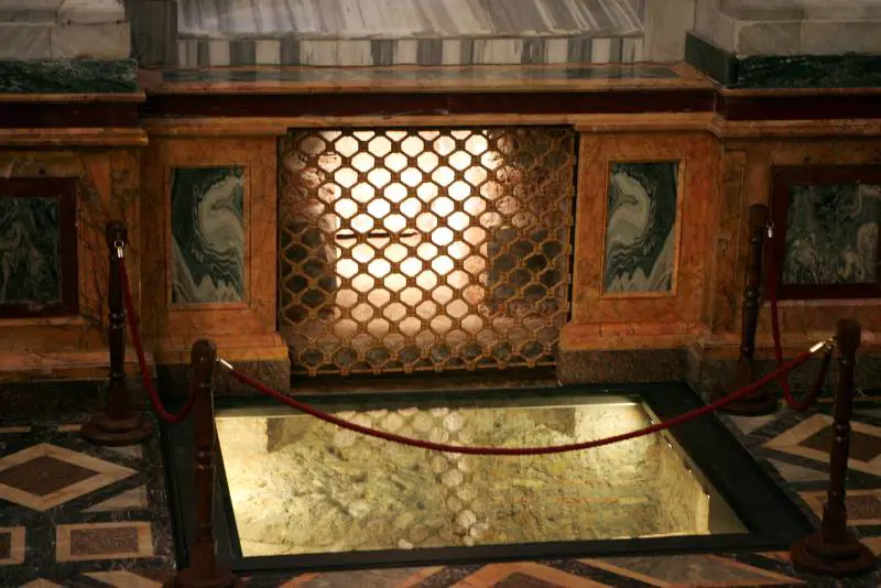 "Nel sarcofago che non è mai stato aperto - ha spiegato il pontefice - in tanti secoli, è stata praticata una piccolissima perforazione per produrre una speciale sonda mediante la quale sono state rilevate tracce di un prezioso tessuto di lino colorato di porpora, laminato di oro zecchino e di un tessuto di colore azzurro con filamenti di lino. E' stata anche rilevata la presenza di grani di incenso rosso e di sostanze proteiche e calcaree.