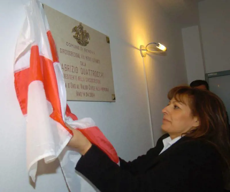 Sempre ieri, finalmente, unistituzione genovese ha per la prima volta ricordato Fabrizio Quattrocchi, ucciso dai terroristi mentre urlava ai carnefici il suo onore di italiano. Non è stato certo il Comune, ma la circoscrizione Medio Levante, che ha dedicato alla medaglia doro al valor civile la sala delle commissioni consiliari. Uniniziativa che ha commosso Graziella Quattrocchi, sorella di Fabrizio, presente alla cerimonia. «Sono felice e vorrei ringraziare tutti - ripete con sincerità -. È la prima volta di Genova e non voglio fare polemiche se questo ricordo arriva dalla circoscrizione e non da altre istituzioni». «Quattrocchi - ricorda Pasquale Ottonello, presidente del Parlamentino - era un nostro concittadino, ma soprattutto un residente della nostra circoscrizione. Questa intitolazione vuole essere un atto politico per ricordare chi ha saputo vincere la sfida ai suoi carnefici con onore e dignità».