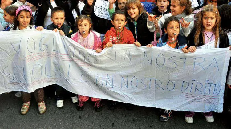 In questa speciale lezione di vita da adulti, non si deve essere perso del tempo neanche per gli allestimenti. I cartelloni sono chiaramente stati scritti dai piccoli su suggerimento dei genitori. Basta guardare slogan come «Giro, girotondo la scuola è bella come il mondo ma se passa la Gelmini, cade la scuola e tutti i suoi bambini». Cè anche leffige della ministro in versione aulica con la dicitura «Beata ignoranza», e poi ancora «Con la riforma Gelmini garantito un futuro da cretini». Tutta farina del sacco dei più piccoli che, senza grembiule ovviamente, sono stati fatti sfilare anche per le strade del quartiere. Come fossero piccoli trofei da esibire, come degli uomini sandwich hanno esibito le scritte contro il ministro. Chissà chi sarà diventata nel loro immaginario Maria Stella Gelmini. In manifestazione come in un corteo di Carnevale, ad intonare «Bella Ciao» come se il Paese vivesse sotto un regime. Pensiero testimoniato da un altro cartellone: «Una mattina mi son svegliato e la Gelmini mi sono trovato: no agli invasori della nostra scuola».
