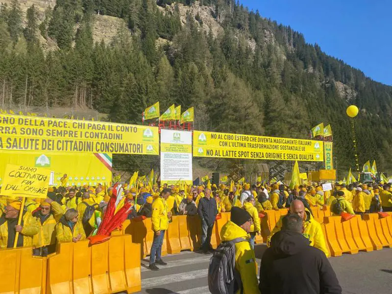 Carne danese diretta a Milano, latte francese verso Verona, confettura tedesca da vetrina. C'è persino l'avocado dalla Moldavia e il kiwi cileno. E poi quintali di carni surgelate pronte per essere vendute a prezzi stracciati sugli scaffali della grande distribuzione. Tutte le confezioni riportano scritte in italiano, ma arrivano dall'estero. Il rito si ripete, ad un valico del Brennero ancora una volta tinto di giallo. Dai tir aperti dai finanzieri emerge la verità nascosta che si materializza davanti agli occhi: ecco il "fake in Italy". Erano diecimila gli agricoltori arrivati ieri al confine con l'Austria per denunciare l'esplosione dei costi di produzione e, soprattutto, per chiedere una tutela reale del Made in Italy. Sono arrivati da ogni parte d'Italia, fin dalle prime luci dell'alba, a disegnare un imponente cordone giallo guidato da Coldiretti. C'erano giovani imprenditori e veterani del settore, molti hanno partecipato anche alle maxi-mobilitazioni analoghe degli anni recenti. Per loro è questione di vita o di morte.