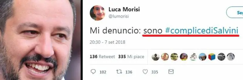Il Corriere ha ricostruito la storia di questa vicenda. Inizia tutto da Luca Morisi, braccio destro della comunicazione di Salvini. Sono le 8.30 di sera, quando scrive il primo tweet: Mi denuncio: sono #complicediSalvini.