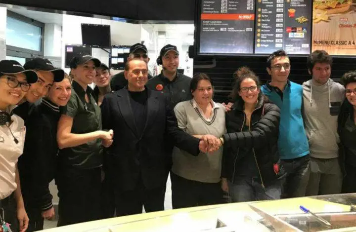 Come sono andate realmente le cose? Berlusconi quella domenica aveva fatto visita, accompagnato dai suoi architetti, al negozio di Segrate della grande catena di arredamento «Maisons du monde» per fare alcuni acquisti per la sua villa in Sardegna. Si era intrattenuto a lungo con la direttrice, con la quale è entrato immediatamente in sintonia, «interrogandola» sul successo della catena, sul fatturato e sulle difficoltà di investire in Italia. Tornando verso Arcore, Berlusconi e il suo architetto (che ha scelto un Big Mac) hanno deciso di fare uno spuntino e, semplicemente, hanno scelto il McDonald's più vicino. Il presidente di Fi ha contraccambiato i saluti dei presenti, poi invitato dal personale si è prestato a fare una foto in cucina con i dipendenti del locale. Immagini che sono diventate cult e virali, moltiplicandosi e diffondendosi su milioni di smartphone.