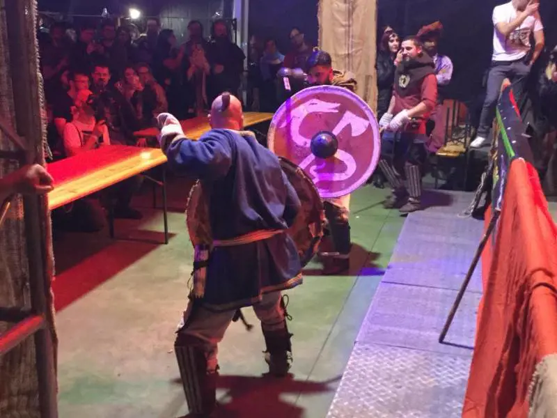 Che non si tratti di una bazzecola lo dimostra il fatto che la pagina vanta 647.434 follower e qui a Trezzo sono venuti almeno in un paio di migliaia al Live Music Club, un localone di provincia per un sabato trasformato in un villaggio feudale che prende le carte di credito e ha le uscite di sicurezza. C'è di tutto: kilt, corni, birra, trecce, spade, birra, anfibi, cappelli triangolari, birra, cetre, ombrelli tascabili (il Medioevo è un luogo molto piovoso), tatuaggi, barbe, birra, birra, birra.