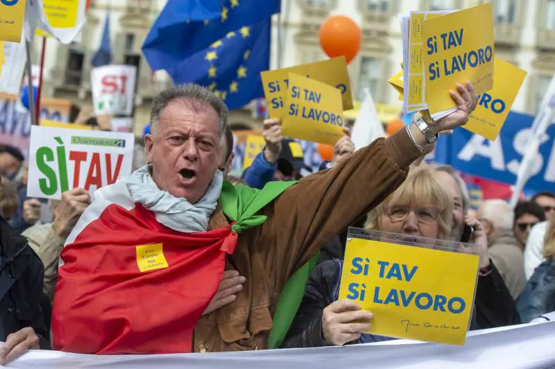 Torino - È partita sulle note dell'Inno alla gioia di Beethoven l'onda arancione del corteo dei Sì Tav che per la quarta volta in pochi mesi ha sfilato a Torino, per chiedere il collegamento ad alta velocità con Lione e al tempo stesso per rimarcare il proprio «No» all'ipotesi che l'opera si faccia ma in versione ridotta. «Troveremo un accordo col M5s», sintetizza il vicepremier Salvini. Secondo gli organizzatori i manifestanti erano oltre 20mila, molto meno per la questura, ed infatti piazza Castello non era gremita come le altre volte.