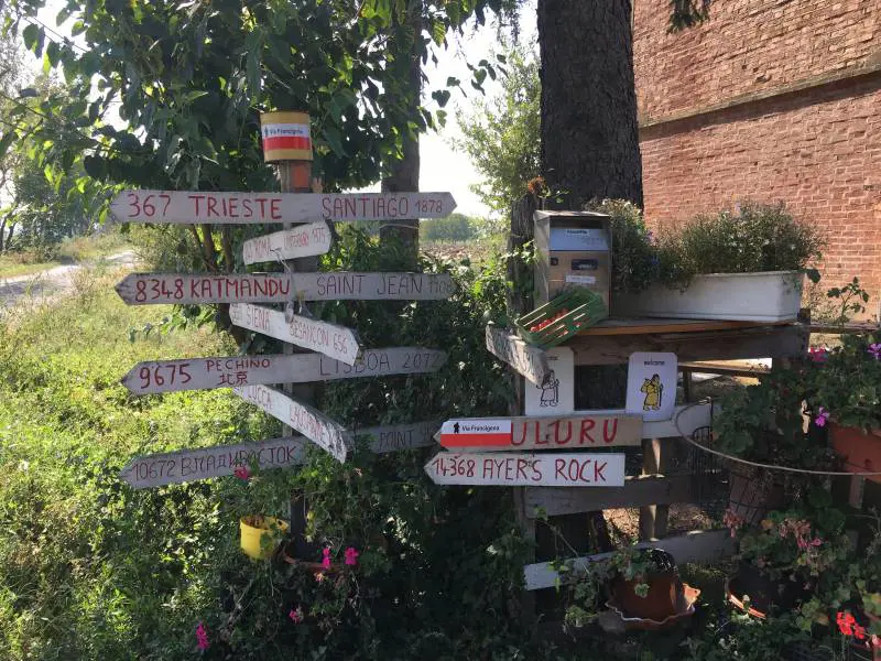Un cammino che negli anni sta diventando sempre più frequentato. Il tratto italiano parte dalla cima del San Bernardo. Attraversa le meraviglie della Valle d'Aosta, tra castelli, campanili romani e cittadine ai piedi delle montagne innevate, per poi entrare in Piemonte, tra le risaie che da Vercelli arrivano quasi fino a Pavia. Si attraversa la pianura Padana, l'Emilia Romagna, fino al passo della Cisa, a 1.041 metri, dove si entra velocemente in Toscana: Lucca, San Gimignano, Siena, la Val d'Orcia, fino alla Tuscia. Per terminare a Roma. Oltre mille chilometri, dalle Alpi alla città eterna.