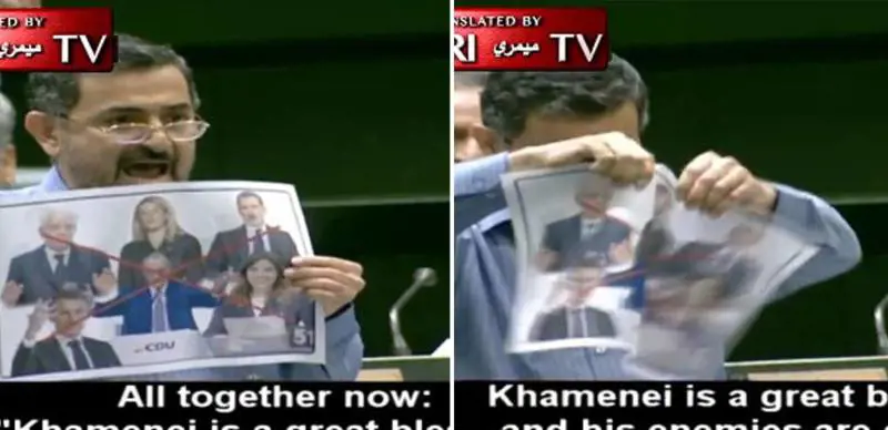 Il gesto del parlamentare iraniano è una risposta all'eurodeputata della Lega Isabella Tovaglieri che aveva strappato la foto di Khamenei. E la insulta: "Prima dimostra se eri o meno una delle prostitute di Epstein per Trump". Maggioranza e opposizione si schierano al fianco del Capo dello Stato. "Atto esecrabile e ignobile", lo bolla Galeazzo Bignami, capogruppo di Fdi alla Camera. Mariolina Castellone del M5s: "Inaccettabile vilipendio al Presidente della Repubblica". Il presidente della Camera Lorenzo Fontana parla di "irricevibile attacco del regime alle democrazie occidentali e ai loro leader ed esponenti". Il presidente del Senato Ignazio La Russa lo definisce "un gesto grave".