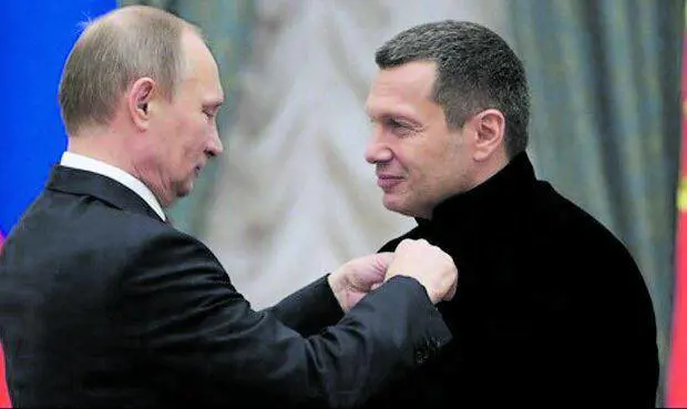 I suoi show sguaiati sul canale di Stato Rossiya 1, non sono altro che il più volgare megafono della più becera propaganda russa. Non a caso per le sue trasmissioni sull'annessione della Crimea nel 2014 è stato insignito da Putin in persona con una medaglia e un'onorificenza "per meriti per la madrepatria", insieme alla portavoce del ministero degli Esteri Maria Zakharova, colei che a più riprese ha preso di mira il nostro Paese con parole volgari e insulti diretti anche il Capo dello Stato Sergio Mattarella. Vladimir Solvyov è così: sguaiato, volgare ed estremista. Da sempre. Ancor di più dall'inizio della guerra d'invasione in Ucraina. E con un particolare rapporto di odio e amore, diventato frustrazione, nei confronti del nostro Paese.