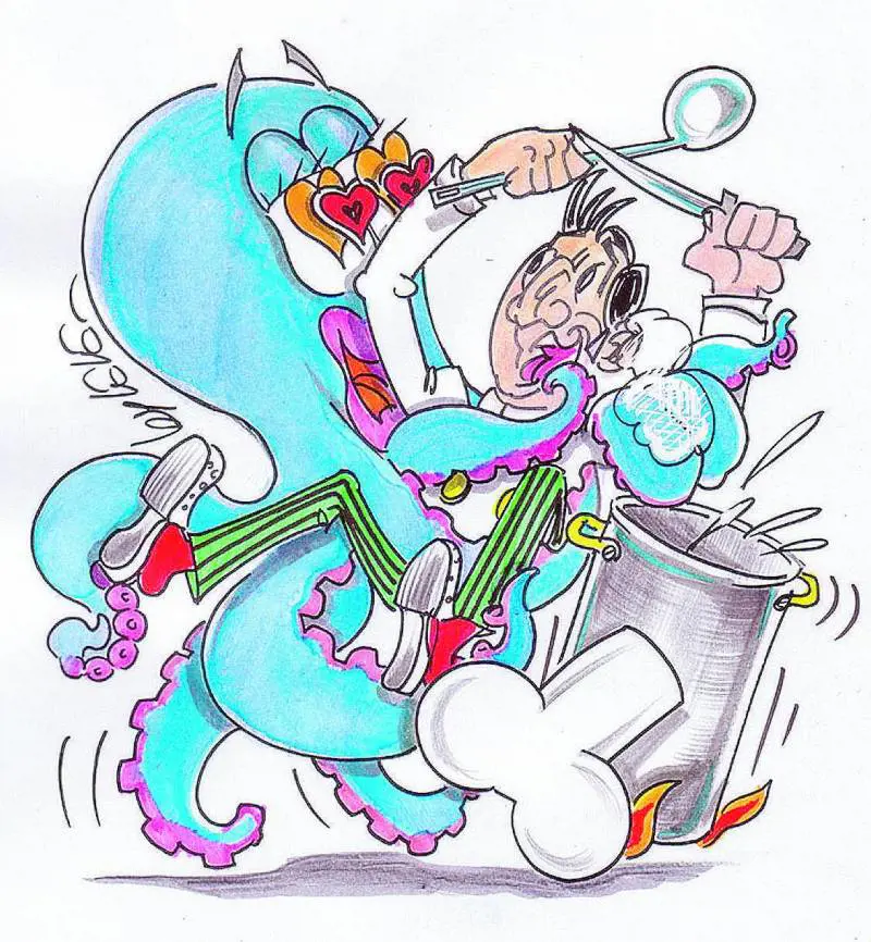 Effettuato lacquisto, occorre pulirlo. «Basta metterlo sotto acqua corrente, fredda, e con sale, girandogli la testa per lavarlo a fondo». Poi si passa alla cottura, necessaria pure per conservarlo. «Il polpo è altamente deperibile - prosegue Pierri -. Per conservarlo in frigo, va lessato, poi coperto e lasciato nel brodo di cottura. Così può durare due o tre giorni. La stessa tecnica va bene per congelarlo, ma in questo caso si può perfino lasciare crudo e sporco, per pulirlo al momento della cottura». Ecco: come si cuoce il polpo? «La tradizione dei pescatori consiglia di mettere pezzi di corteccia, nel tempo poi sostituiti da tappi di sughero, nellacqua in cui viene fatto bollire. Dovrebbe servire a tirare fuori la schiuma del mollusco. In realtà, non serve a nulla. Basta bollirlo, controllandone con un forchettone la cottura: deve entrare nelle carni, ma rimanere attaccato e la parte sotto la testa deve essere dura. Chi vuole portarsi avanti nella preparazione, può aggiungere allacqua, mezza cipolla, due coste di sedano, della carota e qualche chiodo di garofano, in questo modo le carni prendono già gli aromi. Bene pure la cottura al vapore, che lo rende croccante».