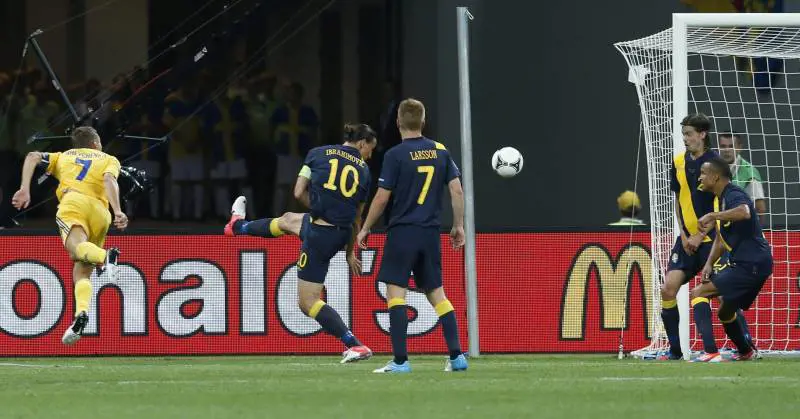 Andriy Shevchenko una doppietta per l’esordio all’Europeo che si disputa nella sua Ucraina. A 35 anni, contro il suo erede rossonero Ibra.