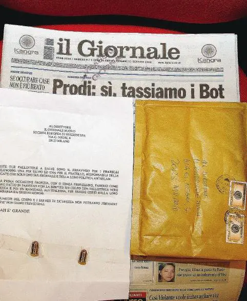 Si scherza, si stemperano i toni. Ma vedere quei bossoli sul tavolo di un giornale fa sempre un certo effetto. Fra l’altro questa volta non ci sono frasi troppo strampalate. Piuttosto, una minaccia precisa, che riguarda direttamente anche il nostro editore: «Queste due pallottole a salve sono il preavviso per i fratelli Berlusconi, una per Silvio e una per il fratello Paolo, responsabili delle porcate che scrivono sul Giornale e della loro politica anti-Islam».