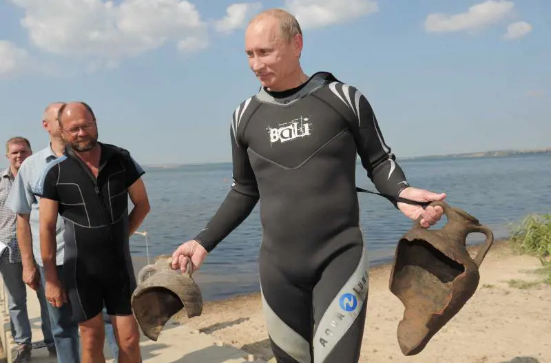 E quindi? Quindi le anfore, probabilmente scoperte qualche giorno prima da membri di una spedizione archeologica erano state rimesse in fondo al mare, per fare provare a Putin l'emozione della scoperta.Per farla breve, una Gardaland in real life, un piccolo parco giochi allestito per il piacere personale di Putin, che per un giorno è riuscito a sentirsi non solo politico, ma anche un po' Indiana Jones.