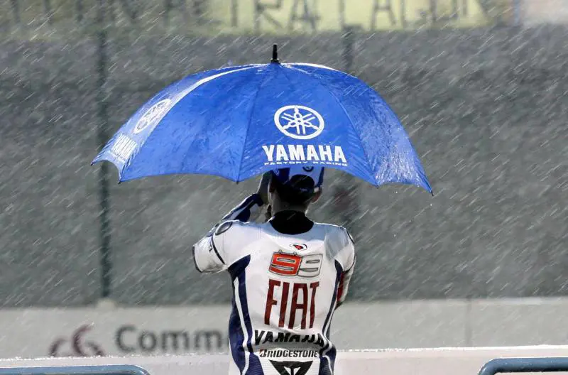 Losail (Qatar) - Alla fine non sono state né le gomme né i motori né tantomeno i piloti a fare la differenza. Alla fine c'è stata una sola dominatrice: la pioggia. E l'atteso MotoGp del Qatar, che si disputava in notturna, è stato annullato. Rossi, Stoner e gli altri assi delle due ruote sono rimasti all'aciutto, o meglio al bagnato a causa della pioggia torrenziale. A Losail, proprio in mezzo al deserto del Qatar, dove di pioggia in genere se ne vede poca, ieri sera è caduta tanta acqua che unita alla luce artificiale dei riflettori che illuminano il Gp in notturna hanno creato un cocktail micidiale per la sicurezza dei piloti. Risultato: la partenza della MotoGp è stata prima ritardata e poi annullata definitivamente. E dopo una lunga riunione i commissari di gara hanno deciso di posticipare la gara a questa sera (questa sera alle 20 ora italiana).