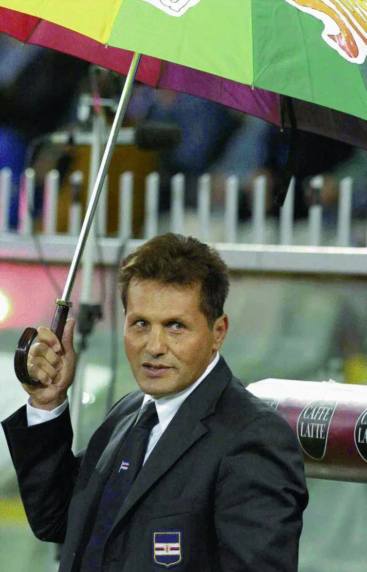 NOVELLINO 6: si presenta in panchina con un ombrello, dote di Striscia la notizia, per proteggersi dagli spunti ironizzando sulla vicenda di Bergamo.