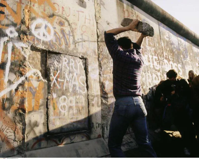I «Mauerspechte» erano all’opera con scalpelli, picconi, badili e quant’altro potesse abbattere, staccare, spezzare, svellere. Pure l’inventiva commerciale si era già messa in moto e degli accorti venditori improvvisati – in genere turchi e italiani – mettevano a disposizione picconi, scalpelli e martelli di tutte le fogge e dimensioni. Altri si erano specializzati in borse robuste, per portare via il bottino. Comprai a prezzo altissimo un piccone davvero esagerato (niente come l’esaltazione rivoluzionaria abbatte i freni inibitori) e due grandi borse, a prezzi altissimi.