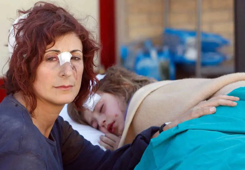 L'epicentro dell'epicentro sta nel cuore di quest'ospedale molto ambizioso, costruito sicuramente per sedare le velleità creative degli architetti, solo eventualmente per soddisfare i bisogni dei malati. Difatti, alla frustata più feroce della terra, proprio questo luogo destinato a proteggere e a curare, uno dei pochi dove sentirsi veramente sicuri, si è sbriciolato nei suoi settori più importanti e più delicati: la Pediatria, il Pronto soccorso.