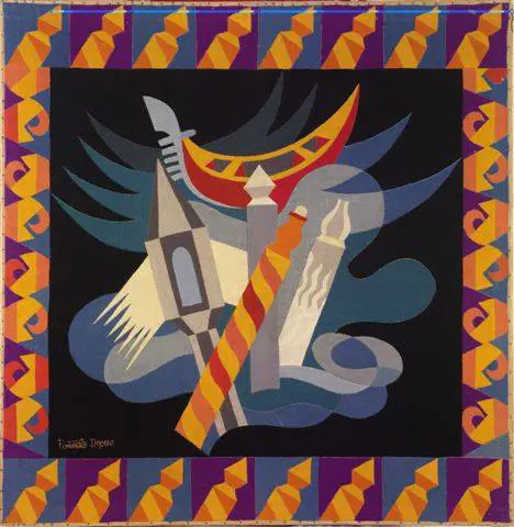 Ritmi veneziani, tarsia di stoffe, anticipa con la sua sintesi di futurismo e di Déco le opere realizzate alla fine degli anni Venti negli Stati Uniti come, ad esempio, il memorabile Traffico a New York.
