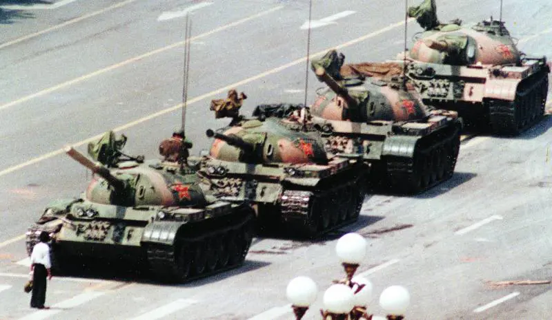 Un omino in bianco e nero, visto di spalle, sull'attenti. Bianca la camicia, neri i calzoni. Un tipo smilzo, sui vent'anni; anzi, sparuto, come spesso sono i cinesi a quell'età. In ciascuna mano regge un sacchetto, di quelli della spesa. Davanti a lui, una colonna di carri armati. Muovono da piazza Tienanmen verso l'avenue della Pace Eterna. Cioè vorrebbero muovere, ma non possono, perché davanti al primo tank si para all'improvviso l'omino in bianco e nero. Nessuno sa chi è. Nessuno, a parte il carrista imbambolato che lo scruta negli occhi dalla sua scatola di ferro, saprà mai descriverne i lineamenti. Nessuno degli operatori che immortalarono la scena dalle finestre del Beijing hotel riuscì a riprenderne il volto. Per tutti, da allora, è solo l'Uomo del carro.