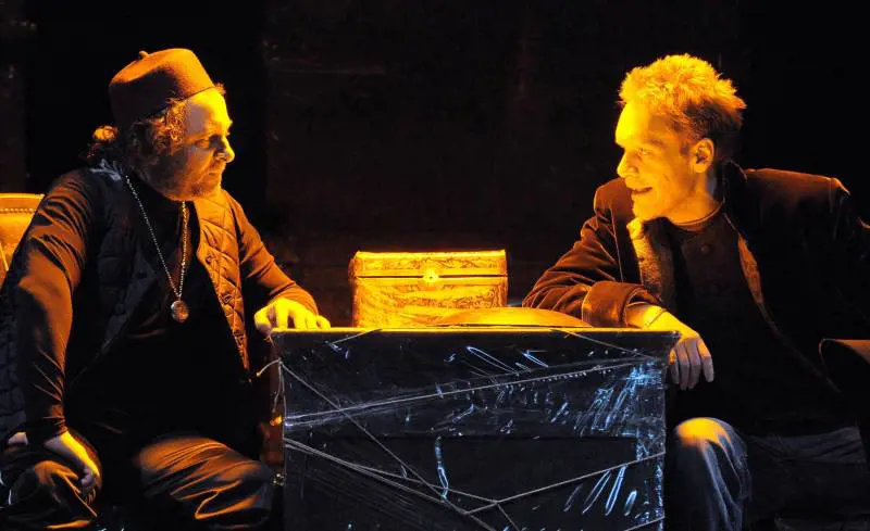 I Rusteghi prepotenti e materialisti ci sono tutti e va chiarito subito che ad esserlo sono solo gli uomini. Maschi rudi, padri padroni con mogli e figli fanno del materialismo un'ideologia da difendere e stanno ben in guardia che nessuno osi desiderare di più che un piatto di minestra e un tetto sulla testa, diffidano dello straniero e ripetono continuamente quasi più a convincere sé stessi che gli altri «son padron in casa mia». Le donne sono diverse, loro non sono «rusteghe» né lo vogliono essere, ma ecco la sorpresa del cast di Vacis: niente donne in scena, tutte le parti femminili sono interpretate da uomini tanto bravi e convincenti che in alcuni momenti si ha l'impressione che siano davvero diventati tutti femmine veraci, Jurij Ferrini in capo a tutti nella straordinaria interpretazione della Siora Felice. Donne che vogliono reagire ad un mondo maschilista, donne che riescono a vincere con l'uso della parola, unica arma che gli uomini non sanno usare. La gestualità di questi maschi travestiti è di effetto perché non affettata, nessuna parrucca, nessuna moina eppure tanto essere donne dentro i loro corpi di uomini.