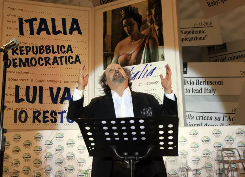 Sono le 20, manca mezzora allinizio del «bunga bunga» dipietresco, il PalaDozza è già stipato di 5000 persone e altre duemila premono ai cancelli. È allora che Tonino dà il meglio di sé: ritorna questurino. «Fate passare, aprite i cancelli, ci vuole il cordone, fateli entrare se no quelli ci massacrano», urla al servizio dordine. Tutti dentro, allora, in piedi o per terra, in barba alla sicurezza e allordine pubblico. Legalità a senso unico per Di Pietro. Nei giorni sorsi la regione Emilia Romagna aveva protestato perché lItalia dei valori aveva usato il logo in modo ingannevole: lex pm ha semplicemente alzato le spalle.