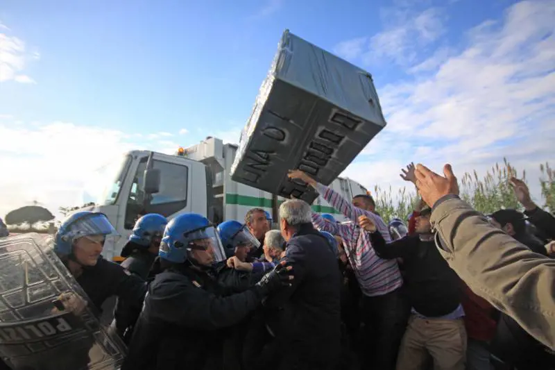 Scontri a Taverna del Re Continua il presidio di manifestanti a Taverna del Re, alla periferia di Giugliano. Una settantina di persone sono ancora intorno al sito di stoccaggio di ecoballe per protestare contro il conferimento di immondizia. Fino all’alba sono stati 17 gli autocompattatori che sono riusciti a sversare nell’impianto e che, dopo la mediazione delle forze dell’ordine, sono riusciti anche a lasciare Taverna del Re. In giornata però sono avvenuti con le forze dell’ordine. Alcuni manifestanti al passaggio di una colonna di autocompattatori hanno tentato di bloccare i mezzi. Le forze dell’ordine hanno effettuato una operazione di contenimento. Negli scontri sono rimasti leggermente contusi anche due manifestanti. La polizia ha effettuato una carica mettendo in fuga un gruppo di persone, composto soprattutto da giovanissimi. Gli automezzi sono entrati lungo il tratto di strada, provenienti da Ischitella. Al momento del passaggio dei mezzi sono volate sedie, aste di legno e pietre. Sono cinque i poliziotti feriti a Taverna del Re: quattro agenti del reparto mobile e un funzionario della Digos che ha ricevuto una pietra in testa.