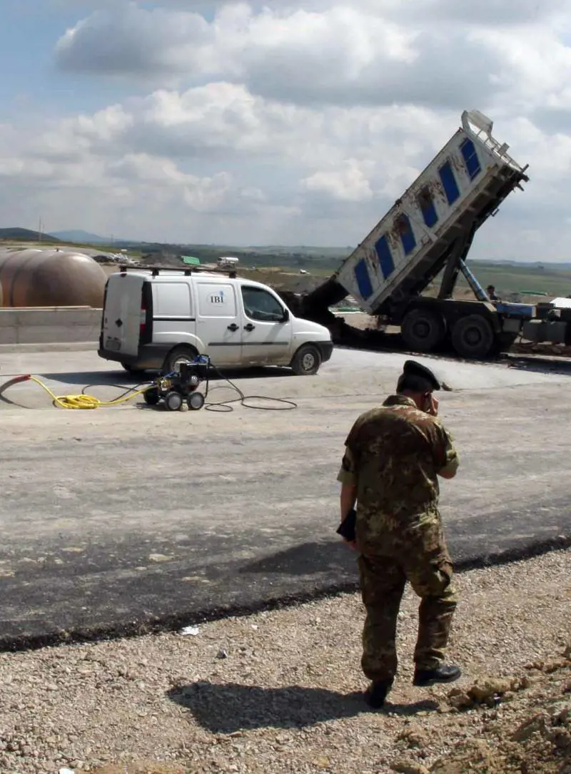 Savignano irpino (Avellino) - Una colonna di una ventina di camion ed autocompattatori è ferma all'esterno della discarica di Pustarza, frazione di Savignano Irpino, dove é cominciato da ieri sera lo sversamento dei rifiuti. La colonna di camion è giunta alle 12.45 protetta da un forte spiegamento di forze dell'ordine. Davanti alla discarica all'arrivo degli automezzi si sono schierati anche una ventina di carabinieri della prima brigata mobile col volto coperto da mascherine per proteggersi dal tanfo penetrante che si diffonde nella zona. Ma davanti alla discarica non c'é nessuno, salvo qualche curioso che si mantiene a distanza di decine di metri. Uno ad uno i grossi camion - che sono passati dalla strada della Puglia e non dal centro urbano di Ariano Irpino - entrano nella discarica e, dopo un rapido controllo dei militari che hanno montato una tenda da campo all'ingresso dell'impianto, si avviano alla pesatura e poi allo sversamento dei rifiuti.