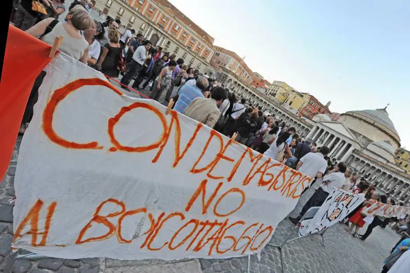 Ma non sono mancate critiche a ministri e al governo Berlusconi: "Ministra Prestigiacomo - si legge su un cartello - nel suo ruolo non si è mai 'ambientata'. La sua disinformazione nuoce gravemente alla salute", "A Napoli la spazzatura è in strada - è scritto su un altro - a Montecitorio è chiusa nelle aule".