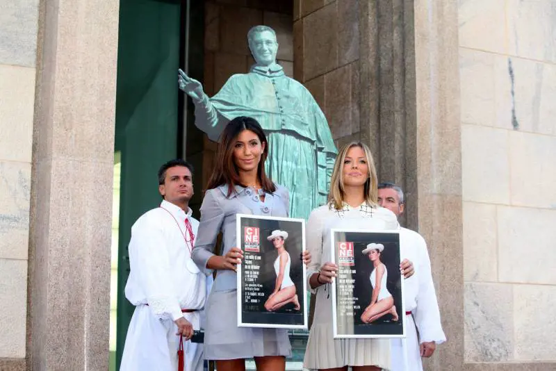 Tanto che ieri Federica e Costanza, le due veline in carica, sono state tenute fuori dalla tradizionale e fluviale conferenza stampa di Ricci che si teneva al Museo del Novecento a Milano, a inscenare un siparietto in piazza Duomo, pregando «San Carlone Borromeo» (cioè De Benedetti) di salvarle dalla cancellazione, mandando sabato in edicola (giorno dell’ultimatum di Ricci) il femminile «D».