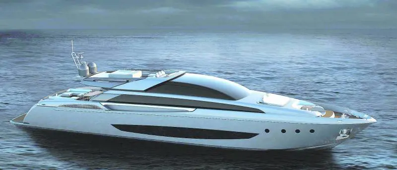 Riva 112' Mythos - costo approssimativo 14 milioni di euro - sarà varato nel dicembre 2013, ma sarà consegnato all'armatore nel marzo 2014.