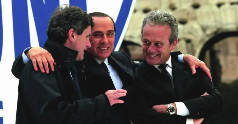Labbraccio a Berlusconi e Fini per la manifestazione con Alemanno e Antoniozzi