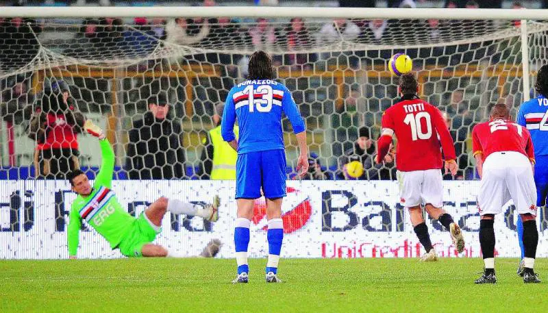 Cassano è nella sua casa barese, davanti alla tv, ancora arrabbiato per quel giallo che gli ha fatto saltare il primo ritorno a Roma da avversario. Francesco Totti, che ha lavorato al meglio per giocare a tutti i costi questa partita, gli manda un messaggio a distanza, rispolverando uno dei colpi più celebri del suo repertorio e siglando nel finale la sua personale doppietta. Un classico alla Samp, diventata con undici reti segnate dal capitano giallorosso la sua vittima preferita. Il «cucchiaio» infilato a Castellazzi si rivela più prezioso del previsto perché sblocca la partita dopo diciotto minuti e ferma quella maledizione dal dischetto con cui la Roma ha dovuto fare i conti in questa stagione. Il gol segnato al 90 poi fa tirare un sospiro di sollievo ai giallorossi, incapaci di chiudere il match in superiorità numerica, anzi rischiando qualcosa di troppo contro una Samp non certo esaltante.