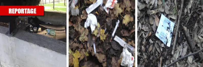 Che di notte il parco si trasformi in un dormitorio a cielo aperto lo testimoniano le mini-discariche abusive che troviamo un po’ ovunque attraversando i boschetti della villa. A terra ci sono pentole, bottiglie di plastica e resti di fuochi usati per cucinare o per estrarre il rame dai fili elettrici. “In questa boscaglia spesso vengono ritrovate anche borse e portafogli rubati, alcuni nomadi si appartano qui per controllare la refurtiva”, denuncia Arca. L’area di via di Donna Olimpia, invece, è ormai preda dei tossicodipendenti. Ai lati del viale che porta al laghetto troviamo decine di siringhe e fazzoletti sporche di sangue. “L’eroina da qualche anno è tornata alla ribalta, quella di via di Donna Olimpia è una delle piazze di spaccio di Roma e i tossici hanno scelto proprio questo punto per venirsi a bucare dopo aver acquistato le dosi”, racconta l’attivista. “Il problema – accusa – è che a poche decine di metri c’è un’area giochi per i bambini, le siringhe finiscono sotto il fogliame e così c’è anche l’eventualità che i bambini possano ferirsi inavvertitamente”.
