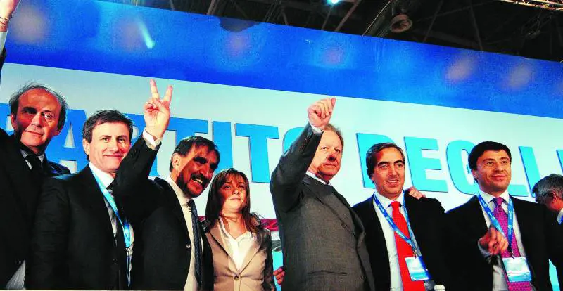 La scaletta degli interventi pomeridiani è ballerina, ma consegna la testimonianza visiva di una classe dirigente che entra nel Pdl con diverse sensibilità, destinate probabilmente a fare e disfare intese trasversali oltre i rigidi confini dei partiti costituenti. Per il bignamino almirantiano recitato dal ligure Plinio, e Ascierto che comunica la certezza di essere di destra «da uno a dieci: nove!», giungono interventi più argomentati come quello di Fabio Granata che usa Pound, Goethe e la Bellezza per mettere in guardia sul progetto edilizio del governo. Sotto il palco c’è un pezzo della gran palestra giovanile che fu la Nuova destra, con Croppi, Raisi e Alessandro Campi. A Urso, che spiega perché il Ppe non è «la nuova Dc» ma il luogo d’incontro delle destre laiche e modernizzatrici, segue Mantovano che offre ottime statistiche sulla sicurezza e buone rassicurazioni alla componente cattolica del partito. Bocchino ricorda che Fini è un leader da trent’anni e, dopo La Russa, lancia un’educata sfida alla Lega sul terreno del consenso. Ronchi va giù con la passione: «An non chiude, non possiamo chiudere i nostri cuori, non ammainiamo le bandiere della nostra idealità». Arriva il presidente del Senato, Schifani: il patrimonio di An, assicura, sarà conservato e valorizzato nel Pdl.